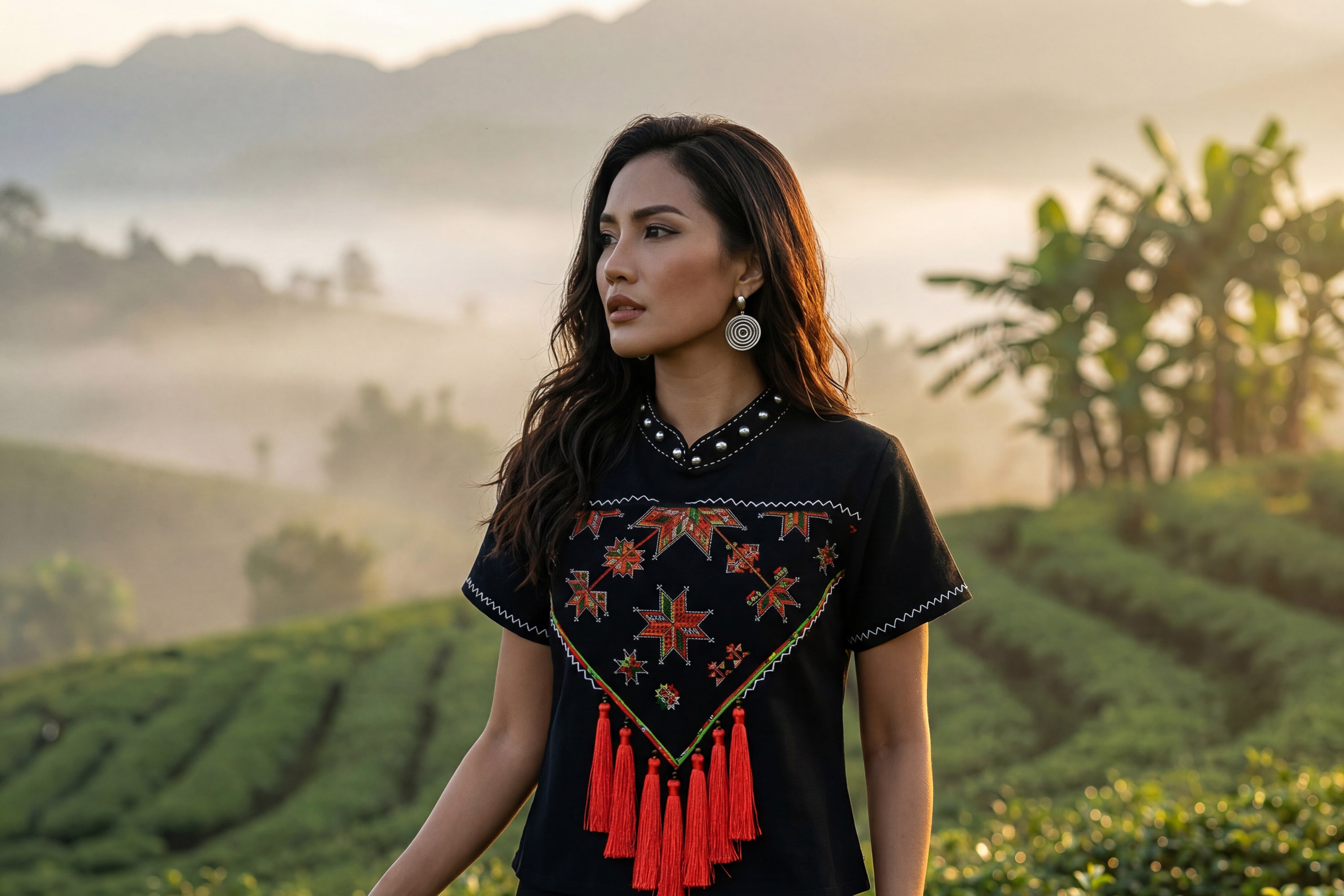 Modern-Style Hmong Top - Black Diamond